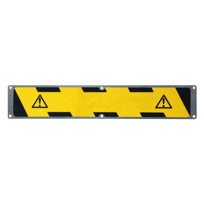 La plaque antidérapante de signalisation permet aux piétons de repérer les obstacles ou zones dangereuses tels que les marches, les rampes glissantes etc. Elle est disponible en modèle rayé noir/jaune ou rouge/blanc ou jaune avec différents messages d'avertissement (sol glissant...).