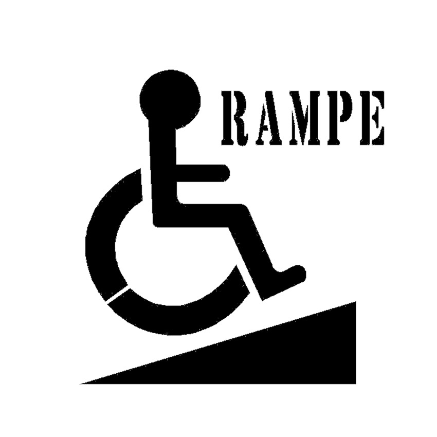 Le pochoir rampe indique aux personnes en fauteuil roulant la présence d'une rampe d'accès. Il est réutilisable à volonté.