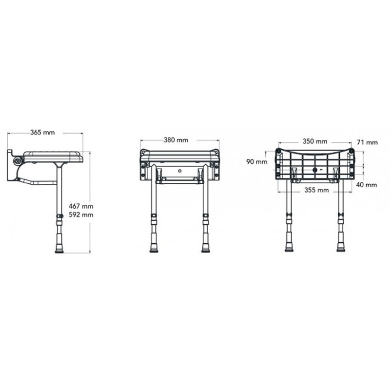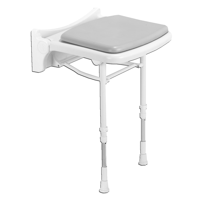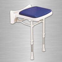 Ce siège de douche rembourré peut être rabattu pour limiter l'encombrement.